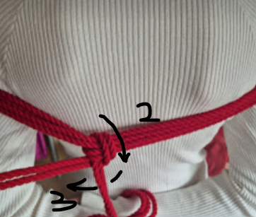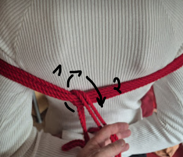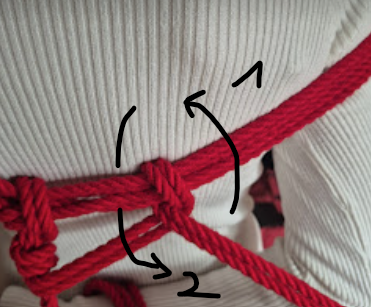 Een windinglaag extra bovenop de omgekeerde spanning. Hierdoor blijft de frictie op zijn plek zonder dat je continu spanning moet aanhouden. Dit is de meest gebruikte borging in shibari.